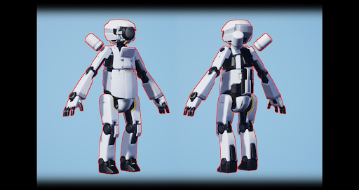 We recommend that you use LOD whenever possible. Focus on the silhouette of the object. It’s best to focus on flat areas to target for vertex reduction. The following image shows use of LOD, applied to the robot model.
