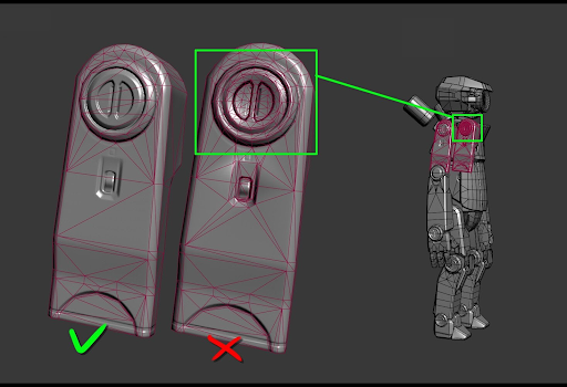 Vertices are very expensive on mobile platforms. To prevent any waste of your processing budget, place vertices in areas that contribute to the visual quality of the game. Small details on a 3D object might not be visible on the game’s final screen. Tiny details might be impossible to see because of the small screen size and placement of 3D objects.