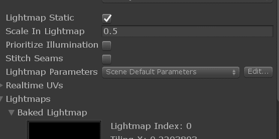Unity की मदद से, यह कंट्रोल किया जा सकता है कि हर ऑब्जेक्ट कितने टेक्सल का इस्तेमाल करे. किसी ऑब्जेक्ट के लिए, Inspector > Mesh Renderer में मौजूद Scale In Lightmap पैरामीटर की वैल्यू से यह तय होता है कि ऑब्जेक्ट, लाइटमैप में कितने टेक्सल का इस्तेमाल करता है.