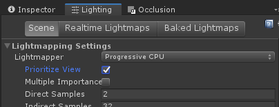 Gambar 6. Lightmapper Settings memungkinkan Anda mengubah metode perekaman untuk Scene.