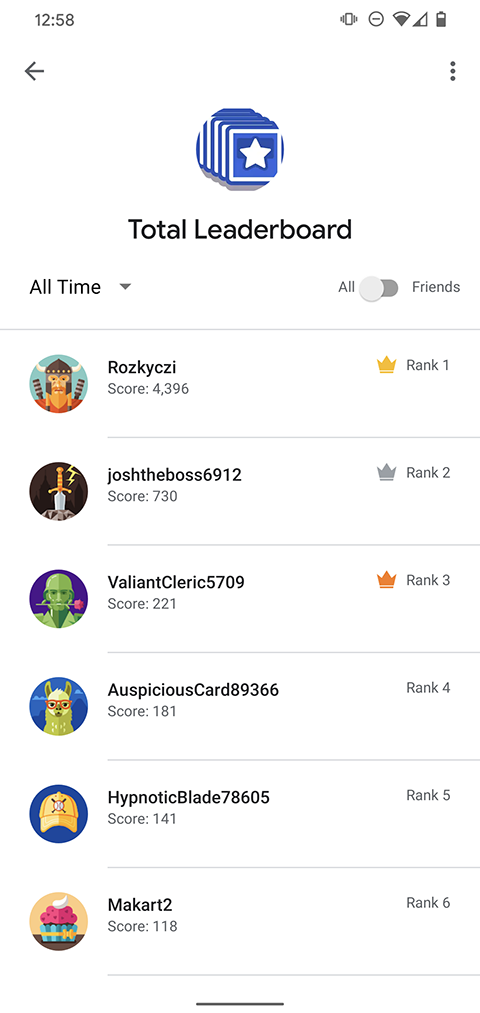 in modo che l'API possa ottenere l'identità del pacchetto chiamante. Di seguito è riportato un esempio dell'UI della leaderboard predefinita.