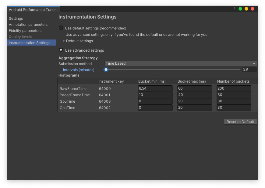 2. Select the Instrumentation Settings tab and click Use advanced settings.