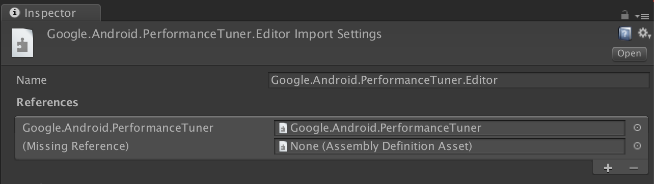 - Klicken Sie auf die Datei Google.Android.PerformanceTuner.Editor, um sie im Inspector zu öffnen.