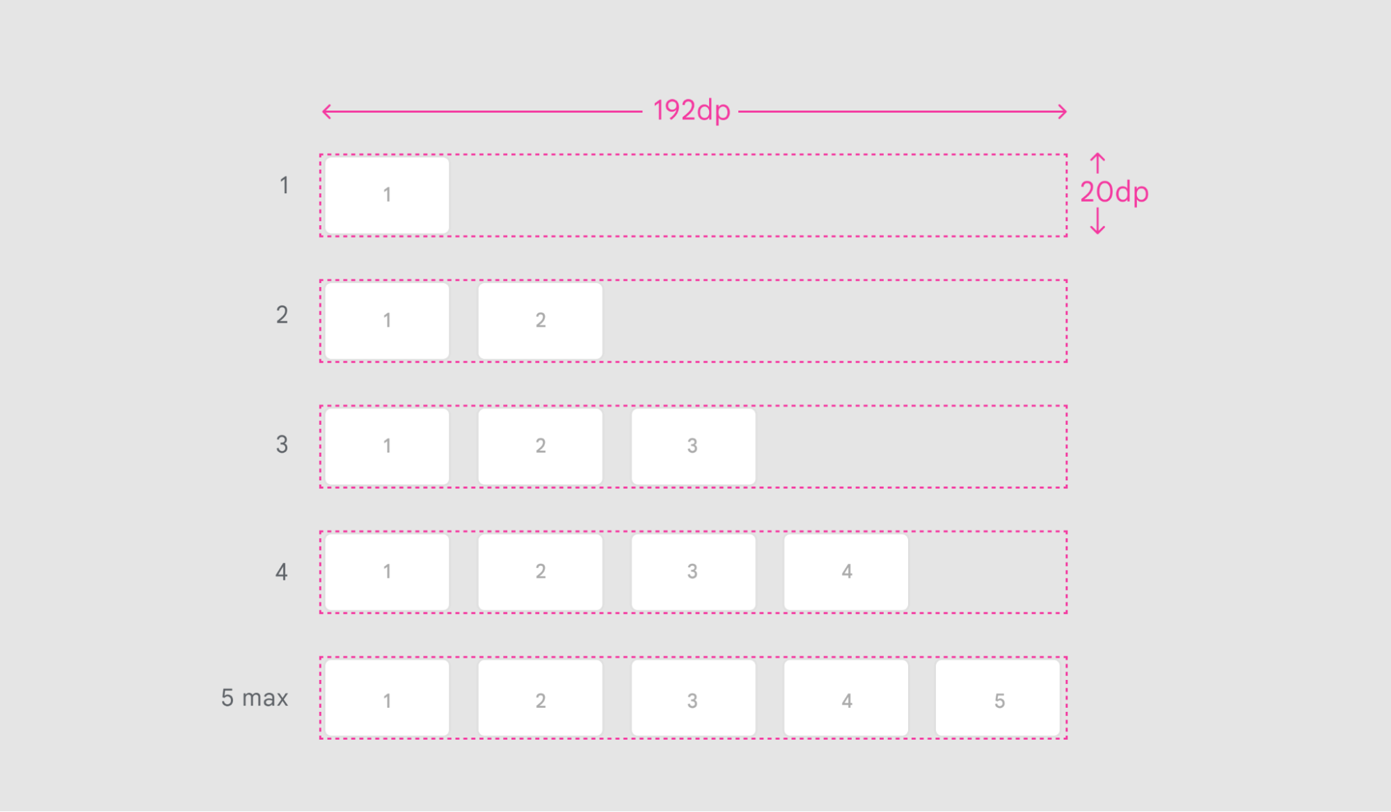 | Outline | 1dp (inner stroke included in dimensions), Radius 2dp, #E0E0E0 |