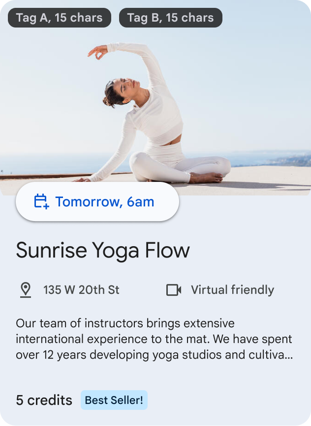 Cụm Đề xuất hiển thị các đề xuất về sức khoẻ và thể dục cho từng cá nhân từ từng đối tác nhà phát triển. Những đề xuất này có thể dành riêng cho từng người dùng hoặc cho tất cả người dùng (ví dụ: nội dung thể dục và sức khoẻ thịnh hành). Sử dụng các thẻ này để hiển thị những bài viết hoặc người dùng liên quan đến sức khoẻ và thể dục.