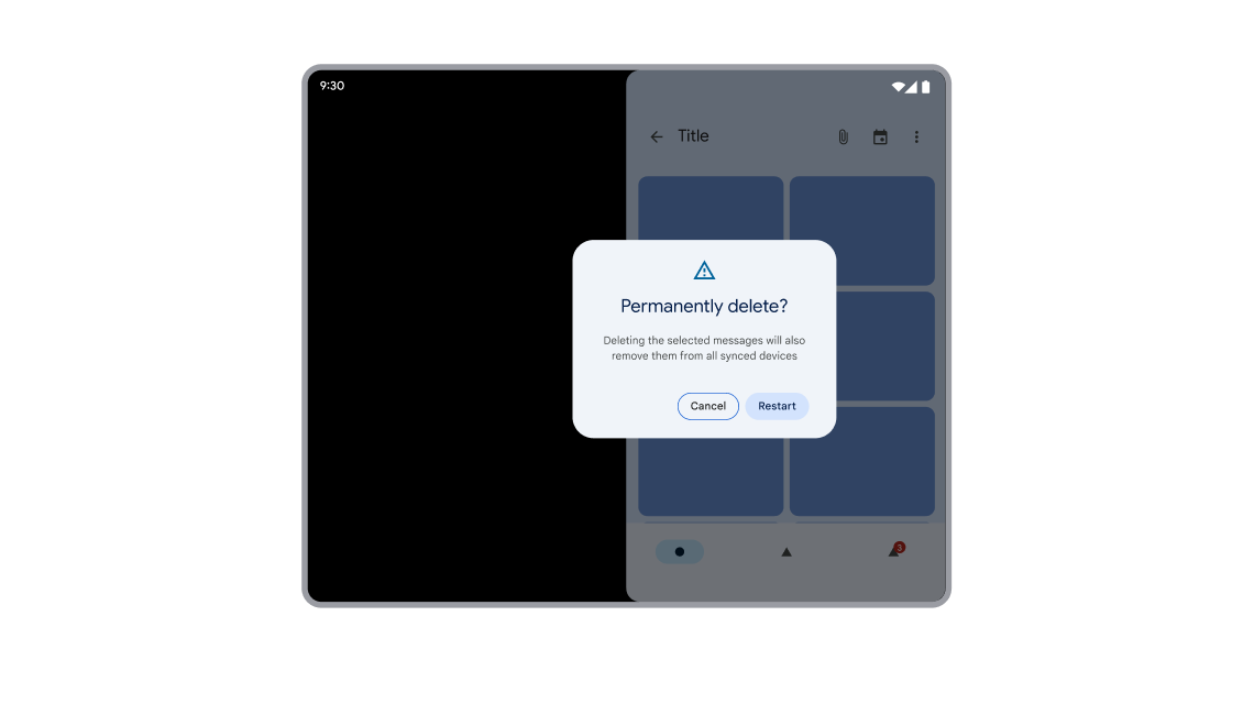Uygulamanız birden fazla yönü ve yapılandırma değişikliğini iyi bir şekilde işliyorsa bu sorunu önleyebilirsiniz. Büyük ekran uygulama kalitesi yönergelerini uygulayarak uygulamanızı büyük ekranlara hazır hale getirin.
