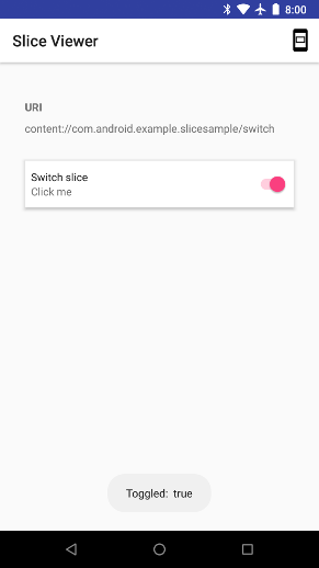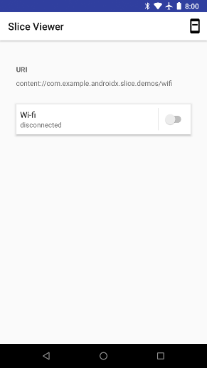 - Tap the URI of the Slice to see a page containing only that Slice. This has the same effect as launching Slice Viewer with a Slice URI.
