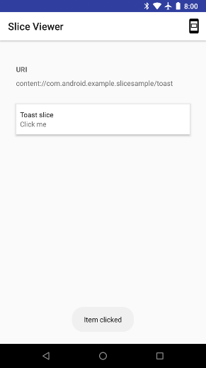 - Toque no URI do Slice para ver uma página que contém apenas esse Slice. Essa ação tem o mesmo efeito que abrir o Slice Viewer com um URI de Slice.