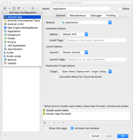 Selecione o módulo do app no menu suspenso Module.