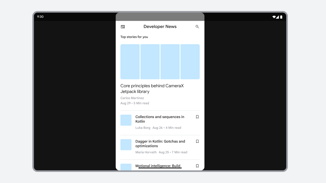 — портретная ориентация, макеты приложений и предварительный просмотр с камеры могут не соответствовать дисплею устройства. - Складные устройства с альбомной ориентацией: некоторые складные устройства, такие как Pixel Fold, в сложенном состоянии имеют портретную ориентацию, а в разложенном — альбомную. Если приложения считают, что в разложенном состоянии портретная ориентация, вероятно появление мерцающих зацикливаний или проблем с компоновкой.