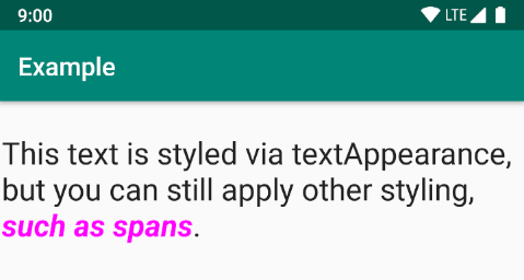 android:text="This text is styled via textAppearance!" />