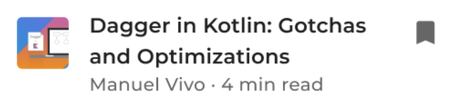 สำหรับปลายทางหรือหน้าจอการนำทาง ViewModel สามารถทำงานร่วมกับที่เก็บหรือ คลาสกรณีการใช้งานเพื่อดึงข้อมูลและเปลี่ยนให้เป็นสถานะ UI รวมผลกระทบของเหตุการณ์ที่อาจทำให้เกิดการกลายพันธุ์ของรัฐ กรณีศึกษาที่กล่าวถึงก่อนหน้านี้ประกอบด้วยบทความต่างๆ แต่ละรายการ การมีชื่อ คำอธิบาย แหล่งที่มา ชื่อผู้เขียน วันที่เผยแพร่ บุ๊กมาร์กแล้ว UI ของรายการบทความแต่ละรายการจะมีลักษณะดังนี้
