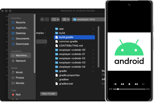 이 튜토리얼에서는 ExoPlayer 인스턴스를 만들어 앱의 활동 수명 주기와 통합하고, 재생목록을 만들고, 적응형 동영상 스트림을 재생하고, 재생 상태를 모니터링하고, ExoPlayer UI 구성요소를 맞춤설정합니다.