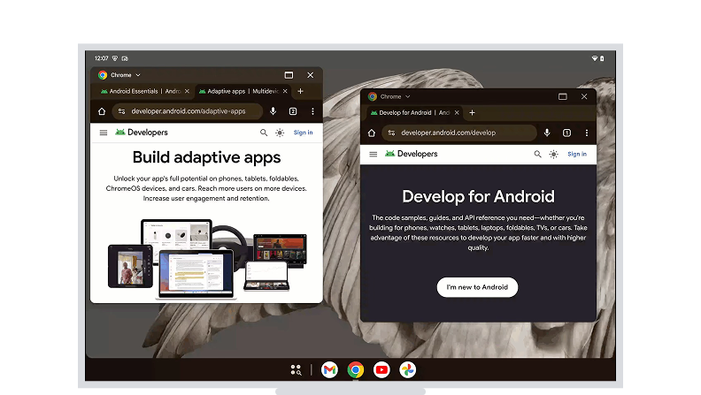 يمكنك تشغيل تطبيقات متعدّدة في الوقت نفسه في نوافذ تطبيقات يمكن تغيير حجمها للحصول على تجربة متعددة الاستخدامات تشبه تجربة استخدام الكمبيوتر المكتبي.