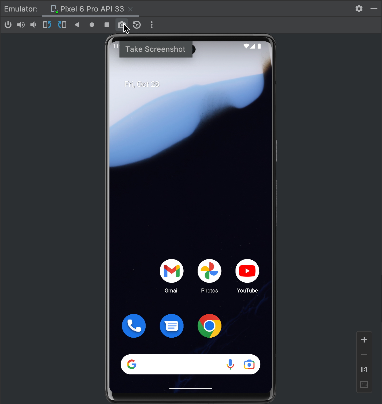 Jeśli używasz emulatora, możesz zrobić zrzut ekranu w oknie emulatora, klikając przycisk Zrób zrzut ekranu, jak pokazano na rysunku 2: