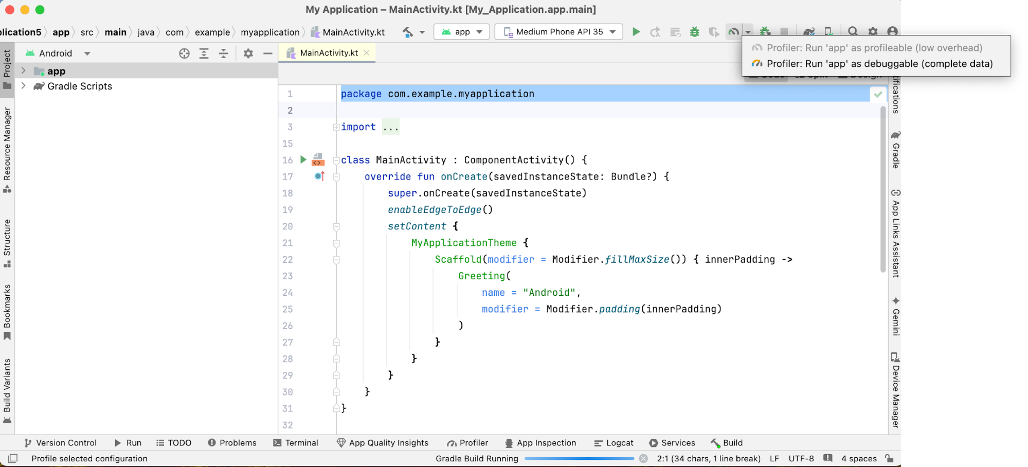 Çalıştırma yapılandırmaları ve profil oluşturma işlemleri yeni bir Çalıştırma Widget'ı'nda basitleştirildi. Profil oluşturma işlemleri ise bir taşma menüsüne taşındı.