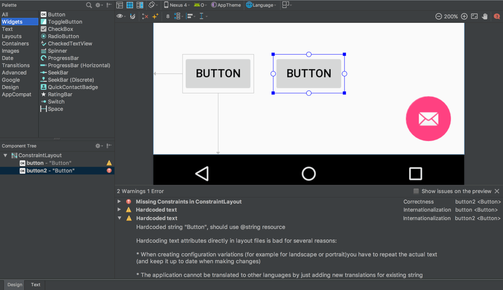 - Grup oluşturma için yeni destek: Araç çubuğunda Kurallar > Grup Ekle'yi seçin (ConstraintLayout 1.1.0 beta 2 veya üzeri sürümler gerektirir)