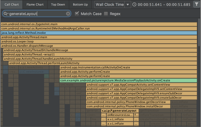 CPU প্রোফাইলার এবং মেমরি প্রোফাইলার একটি অনুসন্ধান বৈশিষ্ট্য অন্তর্ভুক্ত করে যা আপনাকে একটি পদ্ধতি ট্রেস, মেমরি বরাদ্দকরণ, বা হিপ ডাম্প রেকর্ডিং থেকে ফলাফল ফিল্টার করতে দেয়।