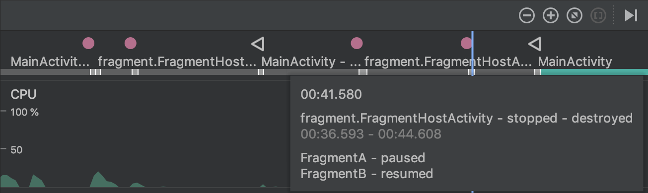 在CPU 分析器中,您現在可以檢查 Java 應用程式在主要 UI 執行緒和 RenderThread 上轉譯每個影格所需的時間。如要調查造成 UI 資源浪費和影格速率低落的瓶頸,這項資料可能非常實用。舉例來說,如要維持流暢的影格速率,每個影格必須在 16 毫秒內轉譯完成。要是影格所需的轉譯時間更長,就會以紅色顯示。