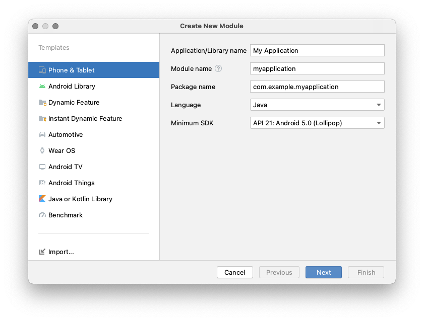 此外,我們移除了「New Module」精靈中的「Import .JAR/.AAR Package」選項。如要將 JAR 或 AAR 匯入專案,請改為使用「Project Structure」對話方塊。