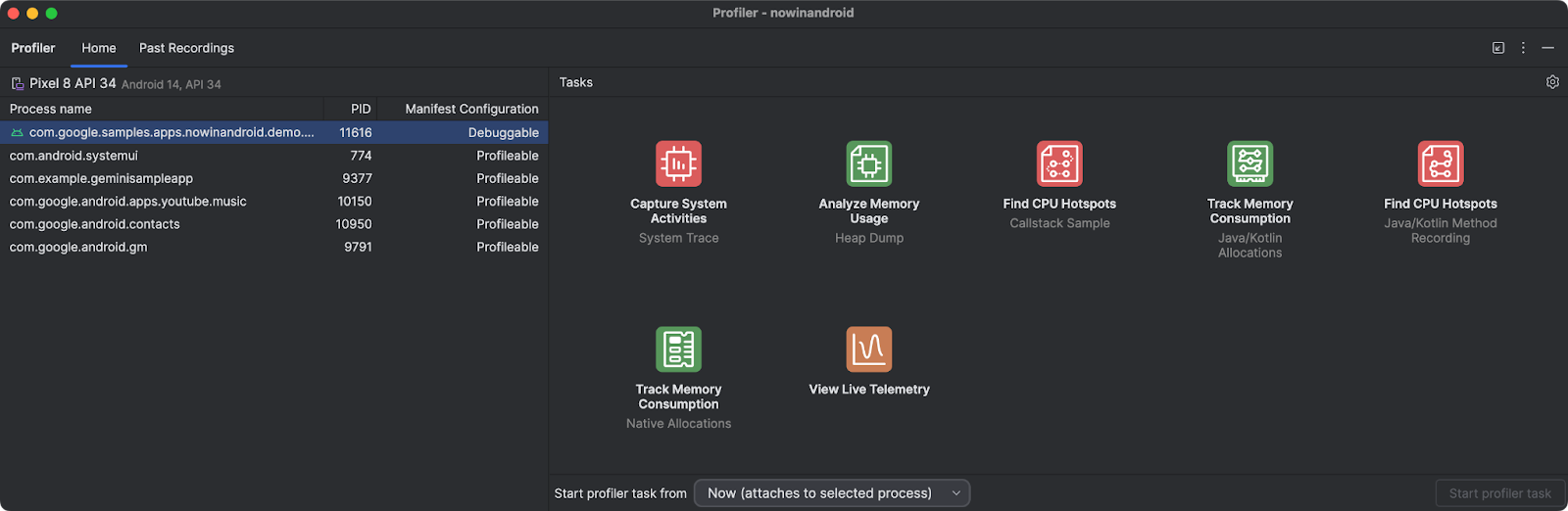 Chúng tôi đã cải thiện hiệu suất của Trình phân tích tài nguyên Android Studio để các tác vụ phân tích tài nguyên phổ biến như ghi lại dấu vết hệ thống bằng các ứng dụng có thể phân tích tài nguyên hiện bắt đầu nhanh hơn tới 60%.