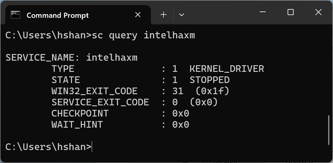 sc query intelhaxm