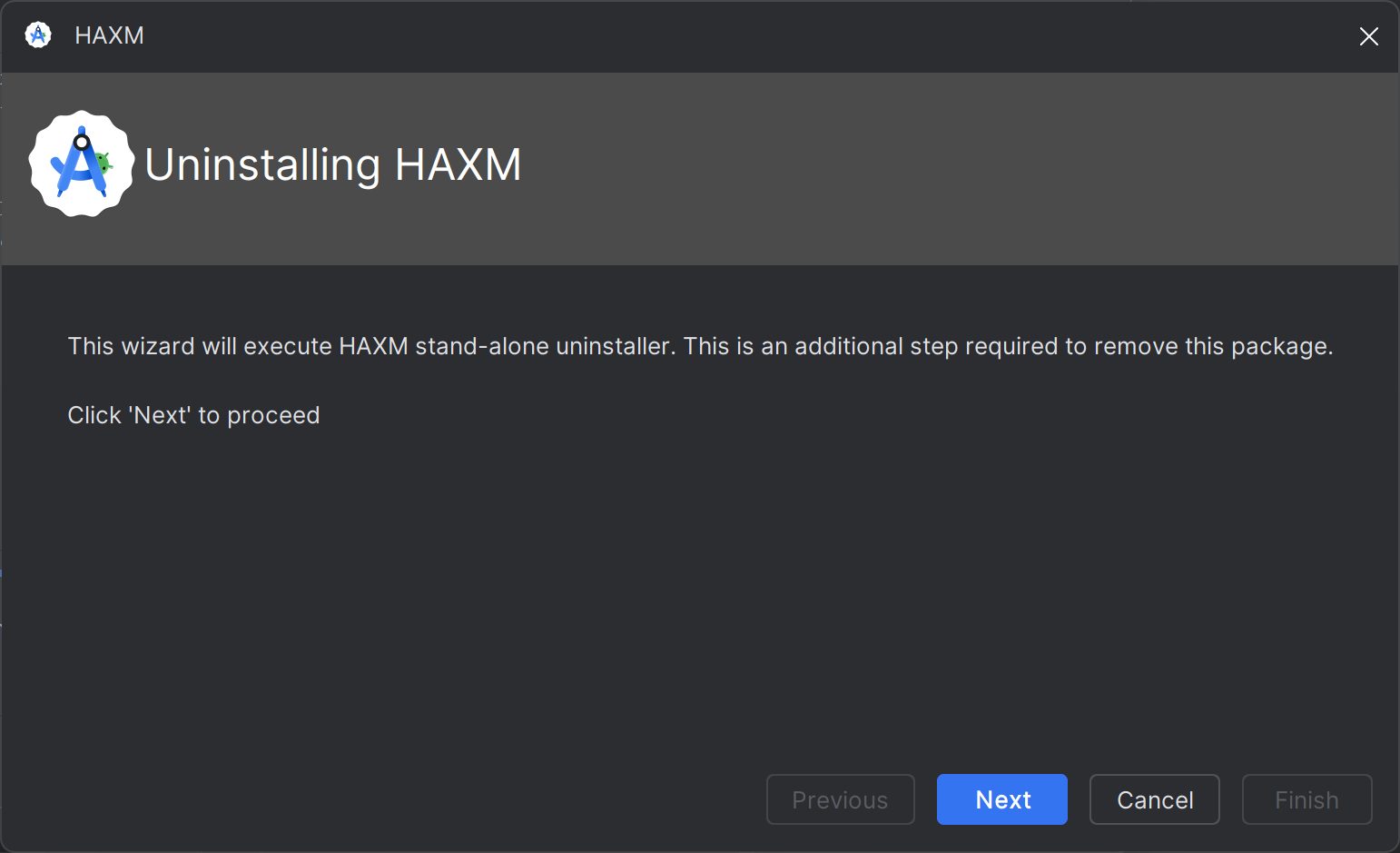 When Intel HAXM is successfully uninstalled, you should see the following. Uninstallation is done and you can stop here.