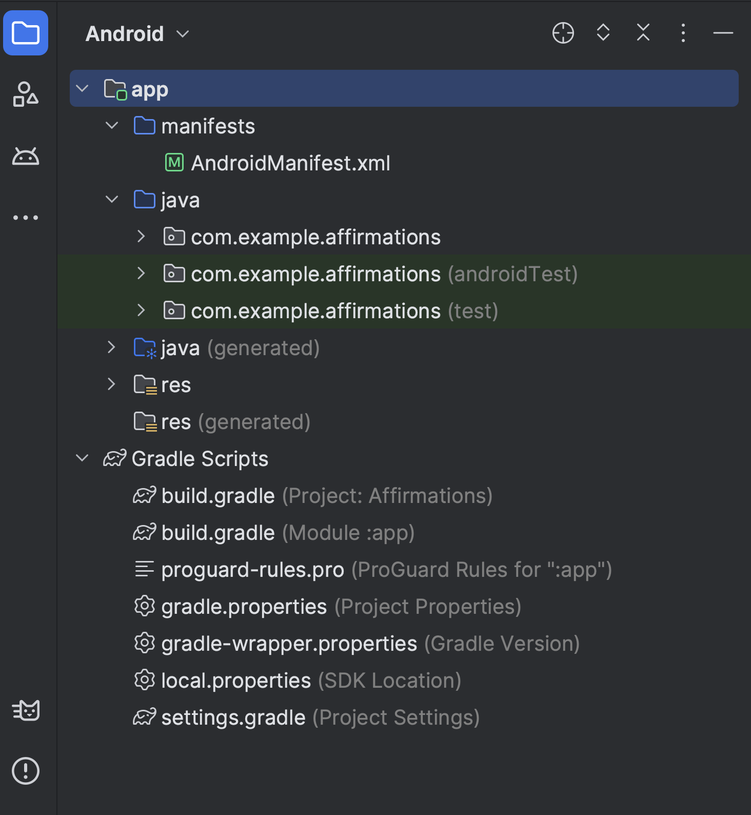 Abbildung 1: Projektdateien in der Android-Ansicht.