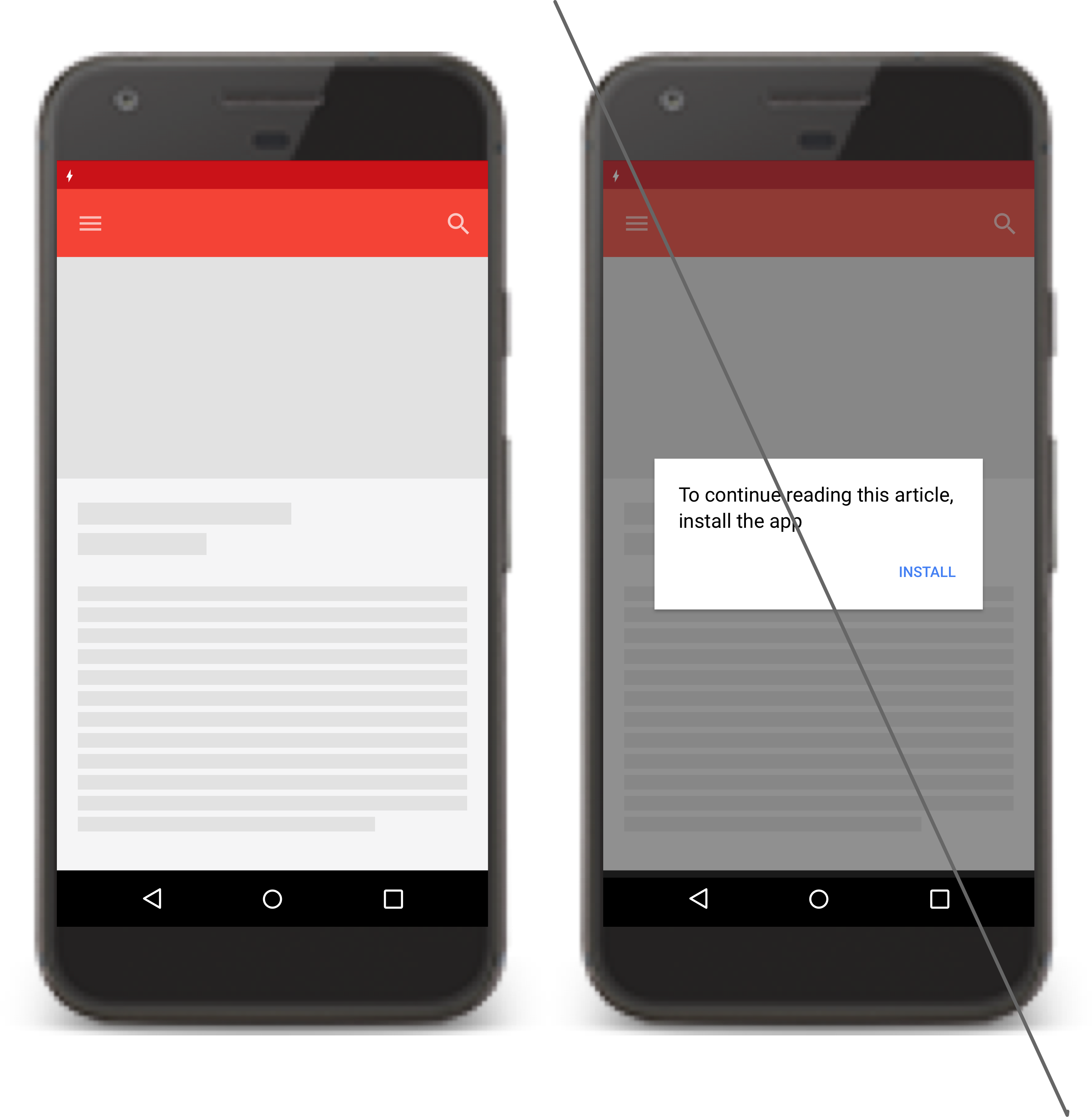 Evita pedirles a los usuarios que instalen la app para que puedan lograr lo que quieren hacer. La acción principal de proporción de clics de una página en la app nunca debe activar una solicitud de instalación.