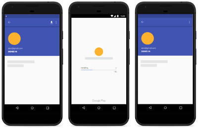 Google Play Instan menyediakan cara baru bagi pengguna untuk menggunakan aplikasi. Aplikasi ini, yang disebut aplikasi instan, adalah aplikasi Android native, tetapi berjalan tanpa diinstal di perangkat. Setiap aplikasi instan memiliki versi yang sesuai yang dapat dipilih oleh pengguna untuk diinstal.