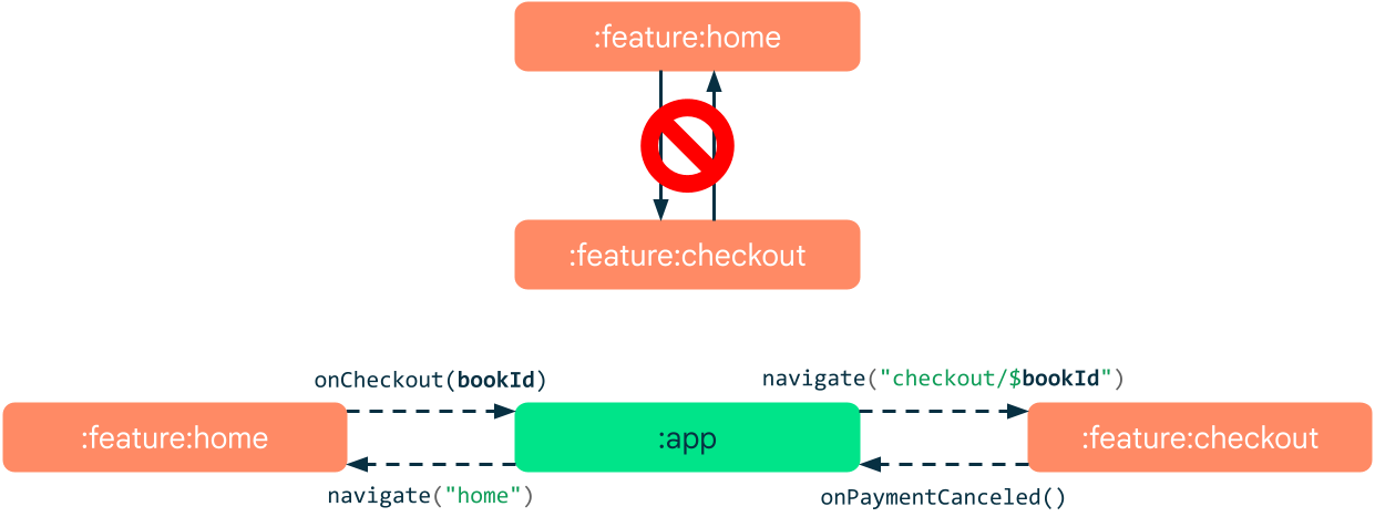 Module und bieten normalerweise Root-Navigation. Ein einzelnes App-Modul kann kompiliert werden
