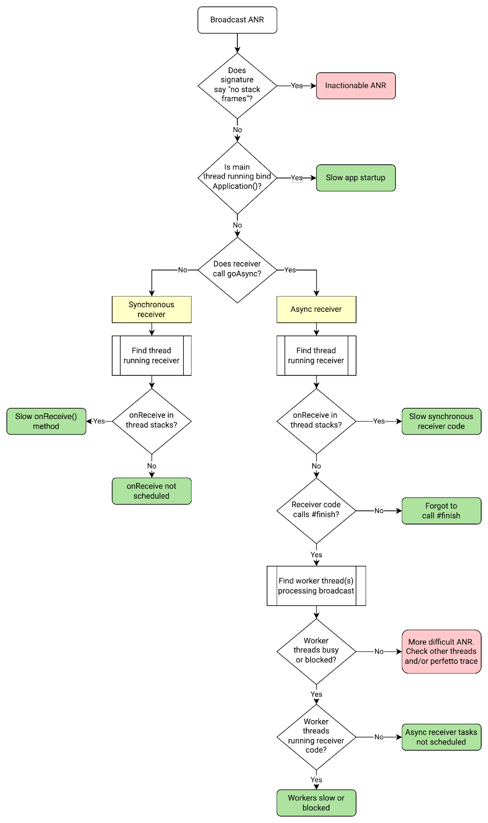 На следующей блок-схеме показано, как определить причину ошибки ANR широковещательного приемника.