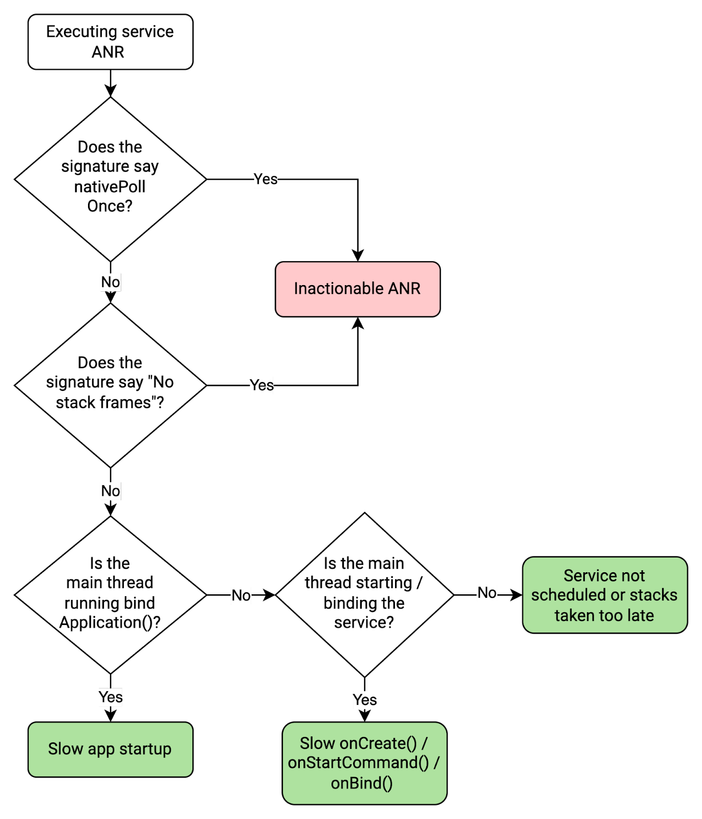 Иногда неясно, почему возникает ошибка ANR, или в сигнатуре кластера и отчете ANR недостаточно информации для ее отладки. В этих случаях вы все равно можете предпринять некоторые шаги, чтобы определить, является ли ANR действенным.