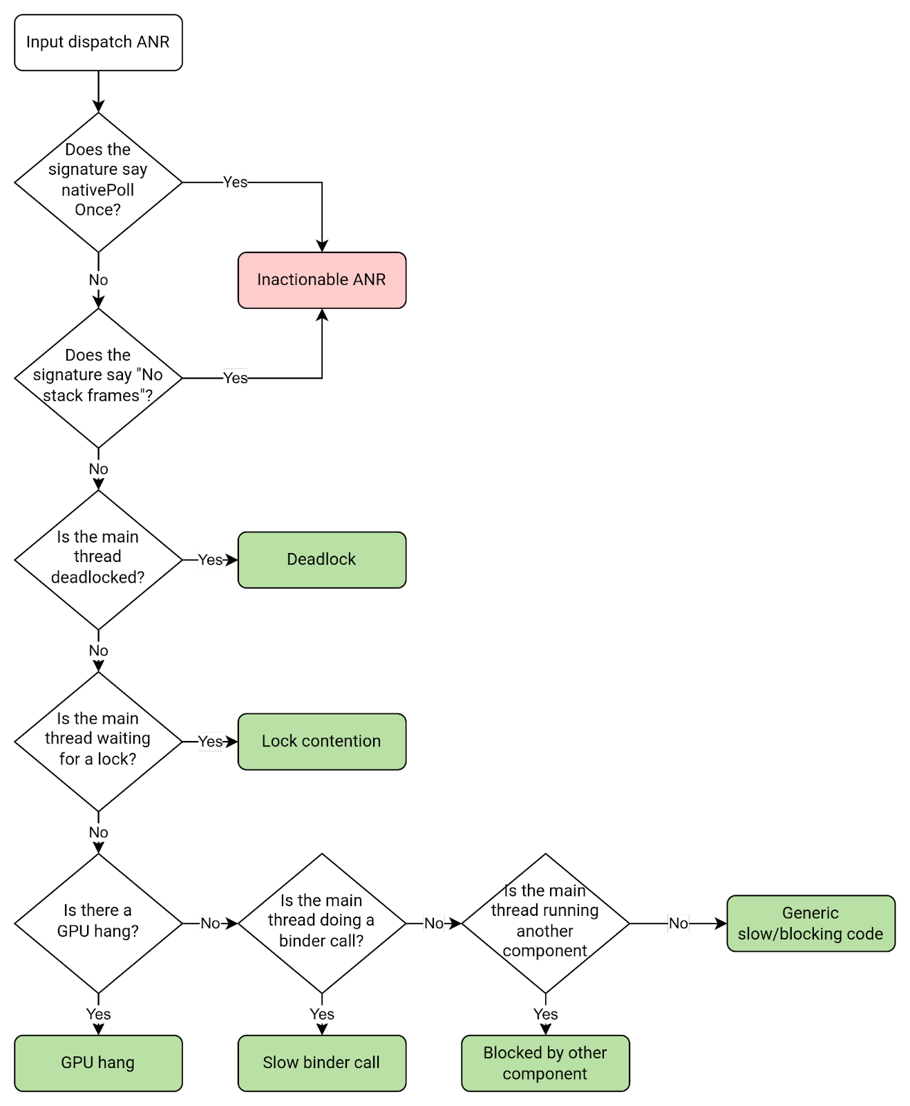 На следующей блок-схеме показано, как определить причину отправки ANR по тайм-ауту ввода.