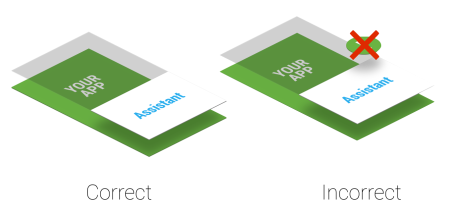 Google অ্যাসিস্ট্যান্টের মতো একটি সহকারী অ্যাপ, Now on Tap নামক একটি বৈশিষ্ট্যের মাধ্যমে সহকারী ওভারলে উইন্ডোটি প্রয়োগ করে, যা অ্যান্ড্রয়েড প্ল্যাটফর্ম-স্তরের কার্যকারিতার সাথে কাজ করে। সিস্টেমটি ব্যবহারকারীকে একটি সহকারী অ্যাপ নির্বাচন করার অনুমতি দেয়, যা Android এর সহায়তা API ব্যবহার করে আপনার অ্যাপ থেকে প্রাসঙ্গিক তথ্য প্রাপ্ত করে।