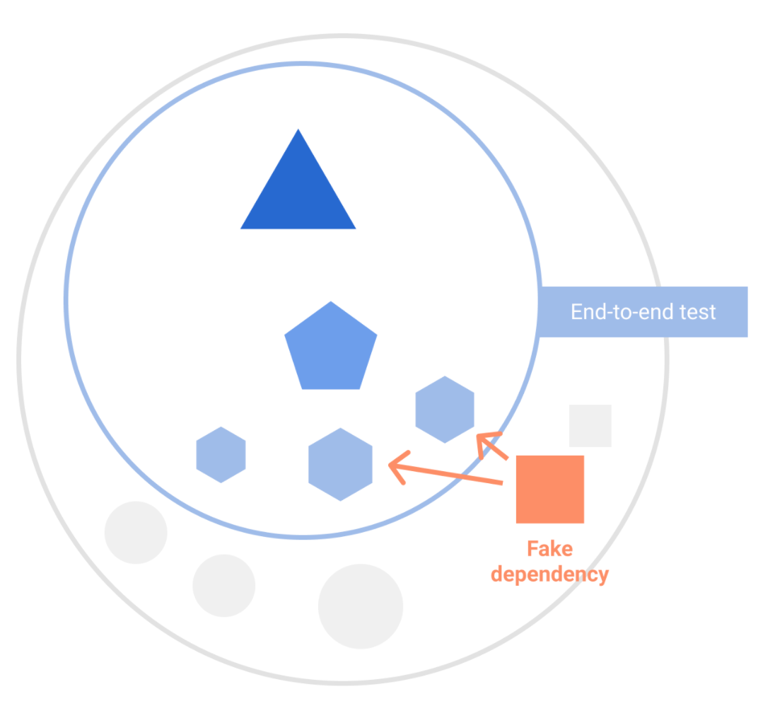 Até mesmo testes de ponta a ponta grandes podem se beneficiar do uso de duplos de teste, como um teste de interface instrumentado que navega por um fluxo de usuário completo no app. Nesse caso, talvez seja melhor tornar o teste hermético. Um teste hermético evita todas as dependências externas, como a busca de dados da Internet. Isso melhora a confiabilidade e o desempenho.