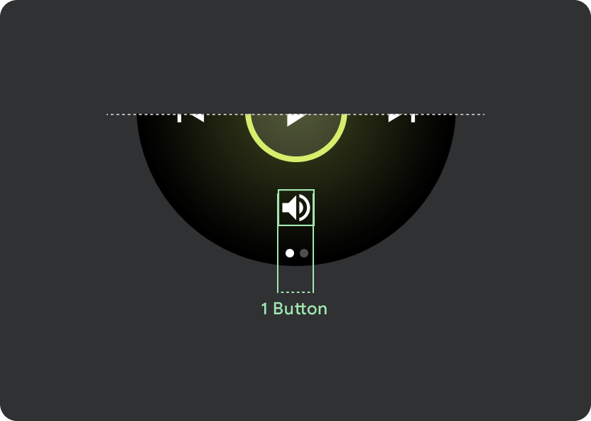 ほとんどの Wear OS デバイスには、回転サイドボタン(RSB)またはベゼルが搭載されています。一部の Wear OS デバイスには、音量を調整するための追加ハードウェア ボタンも搭載されています。音量の調整には、RSB、ベゼル、または追加ボタンを使用します。例に示すように、RSB またはベゼルが回されたときのみインジケーターを表示します。