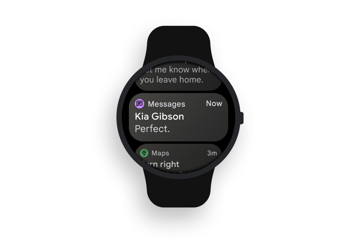 Mẫu thông báo Wear OS cho phép ứng dụng gửi cho người dùng thông tin có thể xem nhanh và cần thao tác kịp thời.