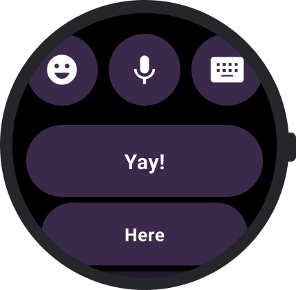 Mọi người thích giao tiếp bằng nhiều định dạng, vì vậy Wear OS cho phép bạn cung cấp nhiều cơ chế đầu vào, chẳng hạn như biểu tượng cảm xúc, giọng nói và văn bản.